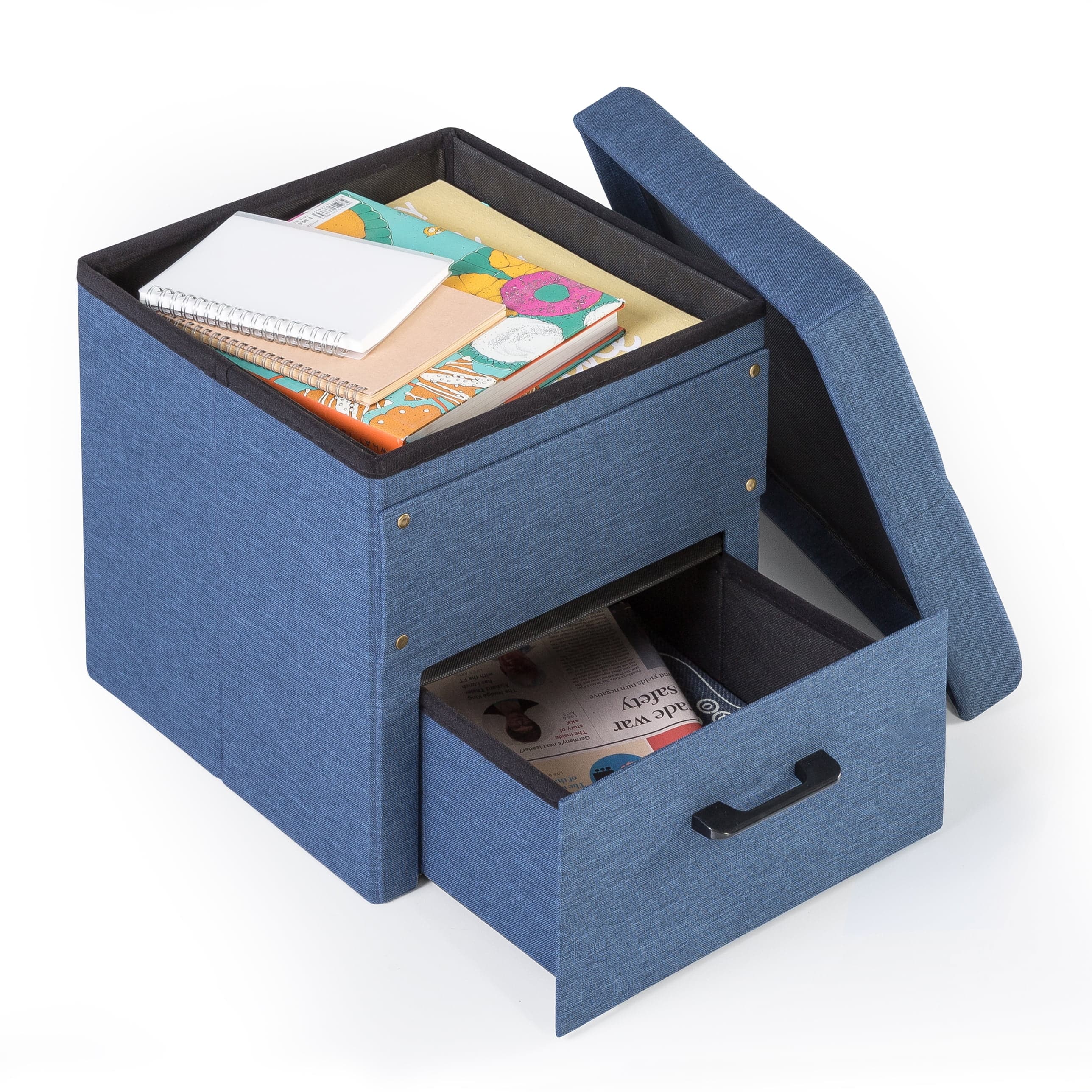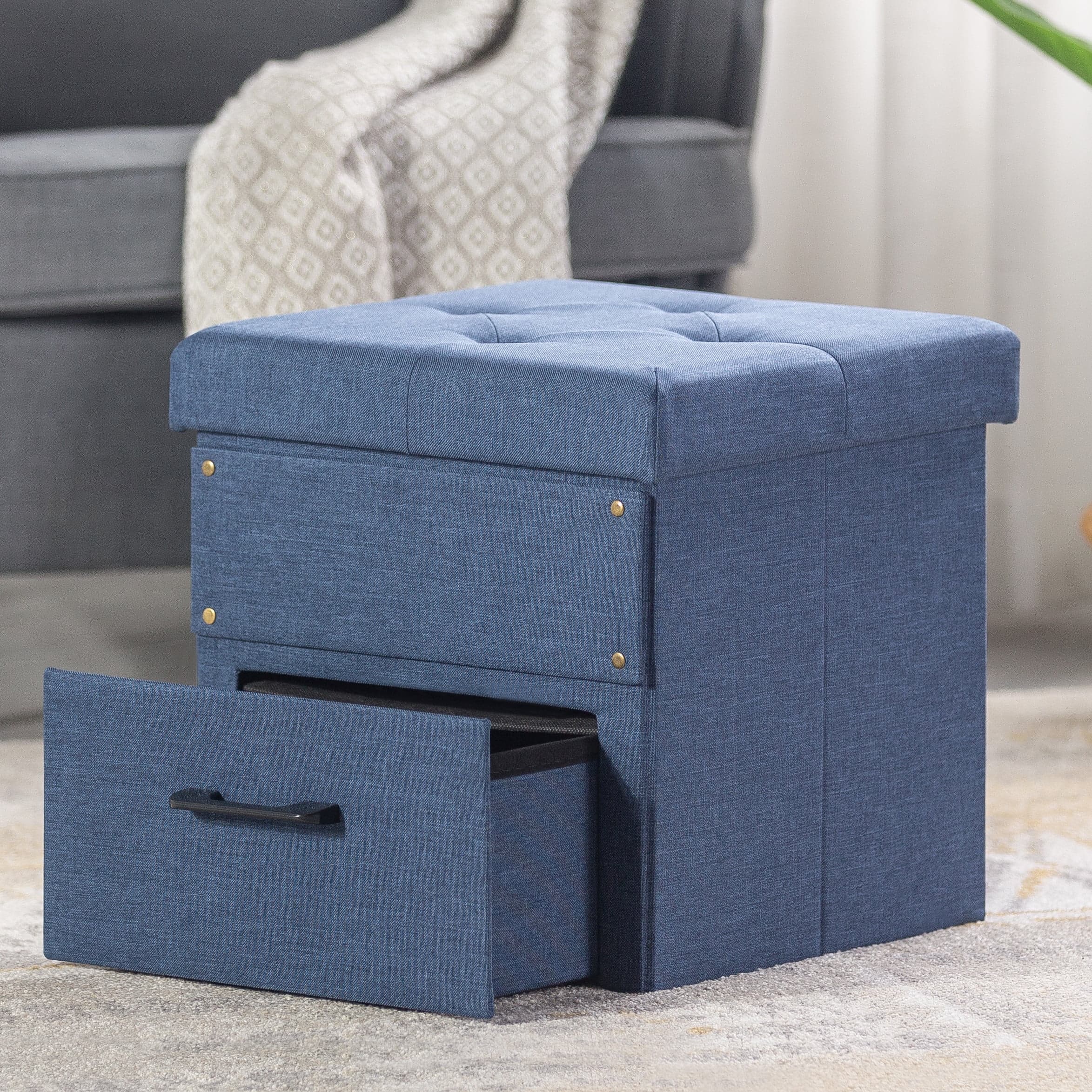 Mellow Stockbox 15" Ottoman with Storage Drawer, Blue