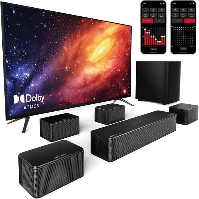 Shop ULTIMEA 7.1 Sound Bar for TV, with Dolby Atmos, APP Control, 4 Wired Surround Speakers, 460W Surround Sound System for TV with 6.5" Wireless Subwoofer, Home Theater Sound System, Poseidon D80. Free delivery and returns on eligible orders.