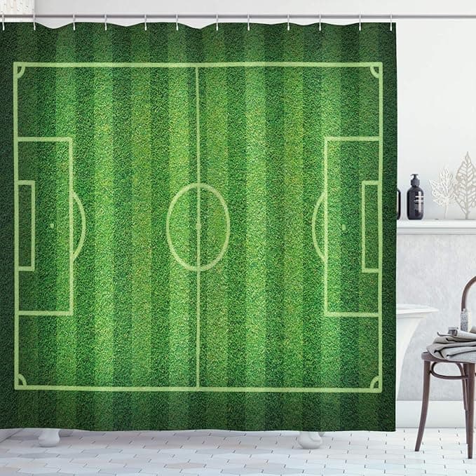 Boy 's Room cortina de ducha (by lunarable, Campo de Fútbol Deportes Hobby competición de briznas de zacate verde realista, tela cuarto de baño set de decoración con ganchos, color verde lima Color Verde/Helecho