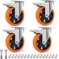 D&L 4 Inch Plate Swivel Casters Wheels 1800lbs Heavy Duty Casters with Brake Polyurethane Dual Locking Casters Set of 4 Red DL-I4-001