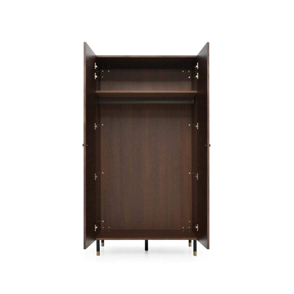 Your outfits will look great in the Twenty10 Designs Willow wardrobe, as this sleek two-door wardrobe commands attention. Finished in chocolate brown, it features a minimalist rich veneer with stylish detailing to the handles and feet.