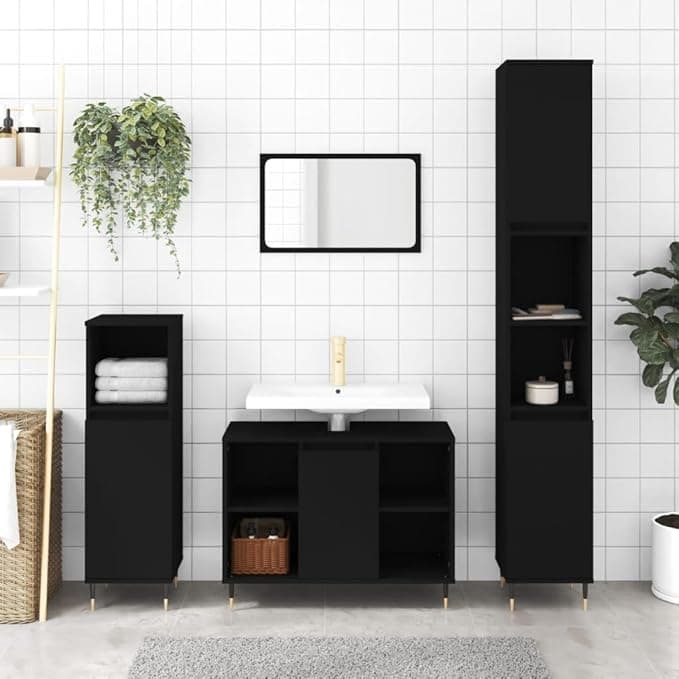 ZEYUAN Armoire de Salle de Bain Noir 30x30x100 cm Bois d'ingénierie, Meuble Vasque Salle De Bain, Meuble Salle De Bain Vasque