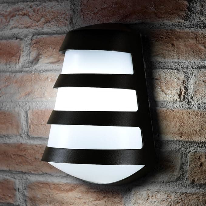 Luce a muro per esterni design alveare di Elegante con Bianco freddo LED lampadina. Le caratteristiche includono: Funzione di override integrata, Due luci di direzione, Diffusore. Dimensioni del prodotto: 285 x 195 x 135mm. Contiene 1 x Lampadina di 5W Bianco freddo E27 Candela che emettono 470lm 6500K. Altre caratteristiche includono: IP54 valutazione, 2 anno di garanzia e include raccordi.