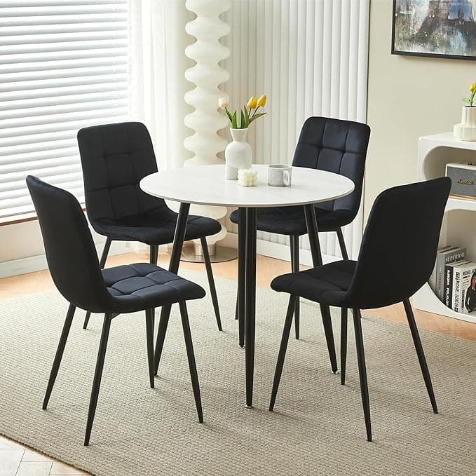 Homcasa Round Marble Dining Table and Chairs Set 4, Modern 80cm White Sintered Stone Slate Kitchen Table and Velvet Padded Chairs for Home Living Room Restaurant (Black, Table with 4 Chairs)