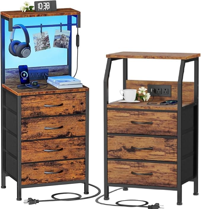 Buy Furnulem Nightstand Set of 2, Tall Nightstand with 4 Drawers and Storage Shelves + Night Stand with Charging Station: Nightstands - Amazon.com ✓ FREE DELIVERY possible on eligible purchases