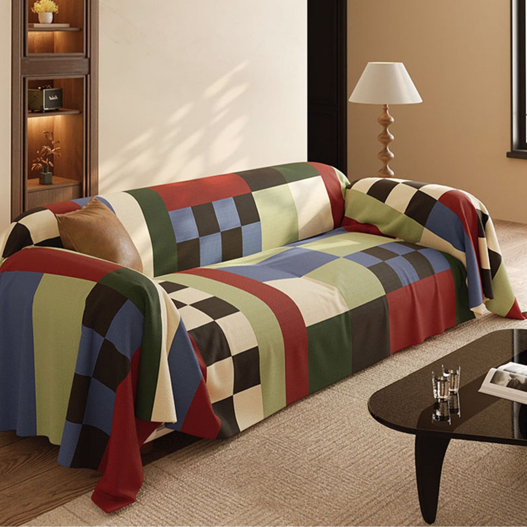 Slashop Retro Bold Block Pattern Breathable Sofa Cover Soft Easy-to-Clean Durable Machine Washable Couch Protection for a Home Upgrade - Urban Mosaic