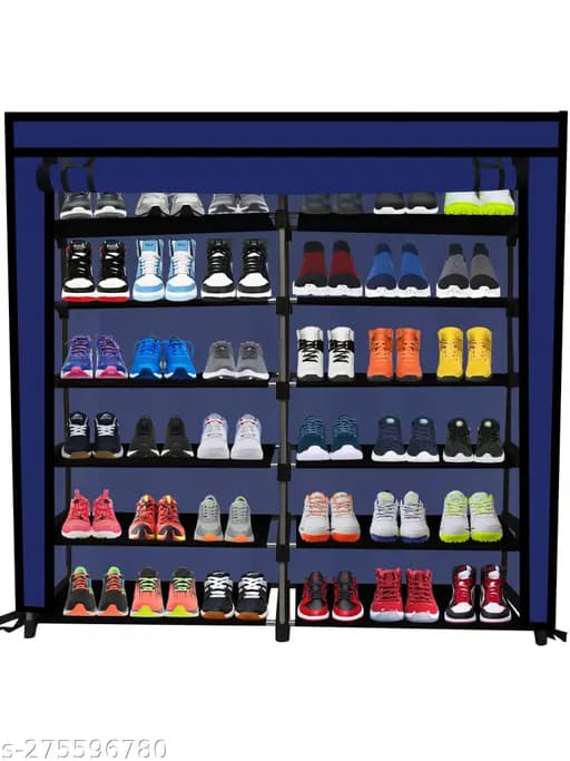 Name: ROBMOB Unique Design 12 Shelves Collapsible Shoe Rack, Stand, Wardrobe, Organizer Non-Woven Fabric, Metal Pipes, with Cover for Kids Room, Living Room, Outsider, Home & Offices (Do It Yourself) BLUE. Material: Metal. Type: Do It Yourself. No. of Compartments: Above 12. Size: Standard. Product Length: 46 Inch. Product Height: 43 Inch. Product Breadth: 11 Inch. Net Quantity (N): 1. Robmob presenting 12 Layer Multipurpose Portable Folding Shoe Rack. Package Contents: 1 Rack Cover with a complete set. Multi-Purpose – You can use it as Cloth Rack Book Shelf. Also EASY TO ASSEMBLE: Adopt buckle design, no tools needed, simply assemble the unit by hand with provided parts. This storage rack is attractive and stylish and looks highly recommended for stylish and beautiful interiors. This shoe rack comes with dustproof durable stitching and zippered cover which keeps your shoes away from dust and un-viewable.