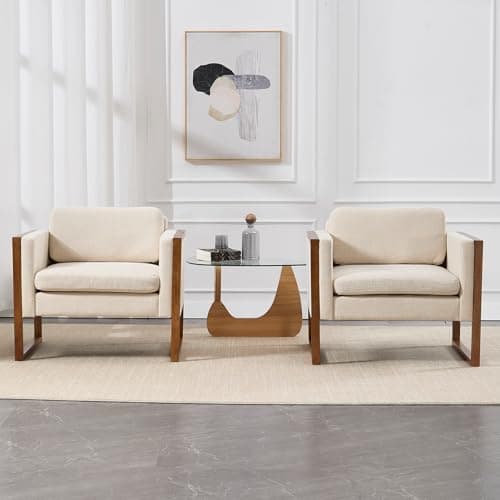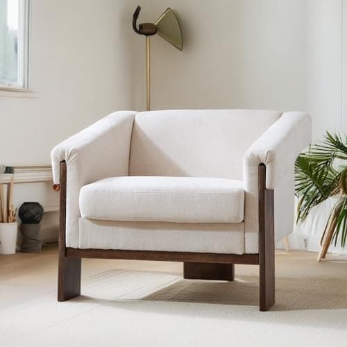 GDFStudio Upholstered Vintage Armchair,Mid-Century Modern Accent Chair,Club Chair Single Sofa Side Chair,Retro Lounge Armchair for Living Room Bedroom Reading Room Office 34' H Beige