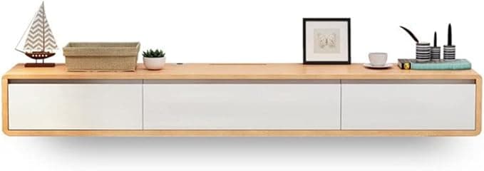Solid Wood Floating TV Stand Shelf with Drawers Wall-Mounted Entertainment Center - Nordic TV Console with Doors for Media Storage and Display