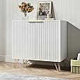 Svimi Fluted Sideboard Cabinet, Buffets & Sideboards, 2 Door Design, Elegant White Sideboard - Acceent Cabinet Ideal for Dining Room and Kitchen Storage 31.4 INCH