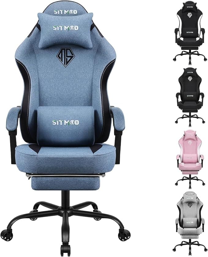 Buy Gaming Chairs for Adults with Footrest-Computer Ergonomic Video Game Chair-Backrest and Seat Height Adjustable Swivel Task Chair with Headrest and Lumbar Support(Blue)-Fabric: Video Game Chairs - Amazon.com ✓ FREE DELIVERY possible on eligible purchases