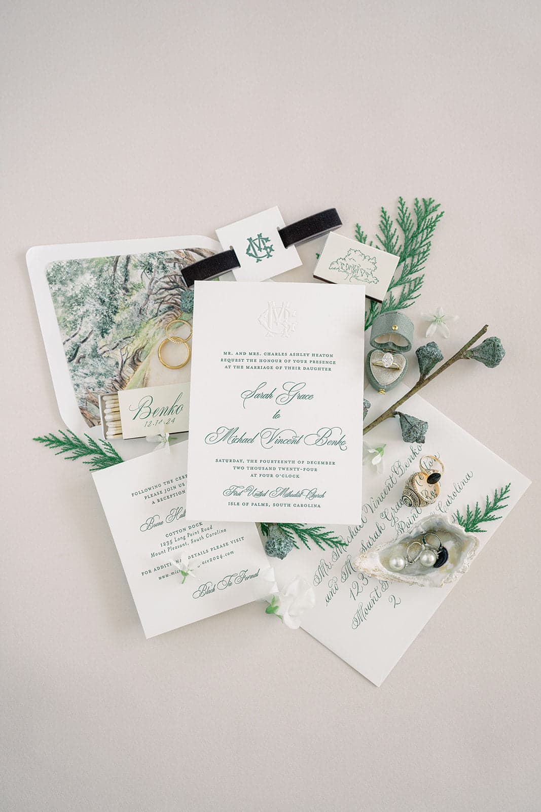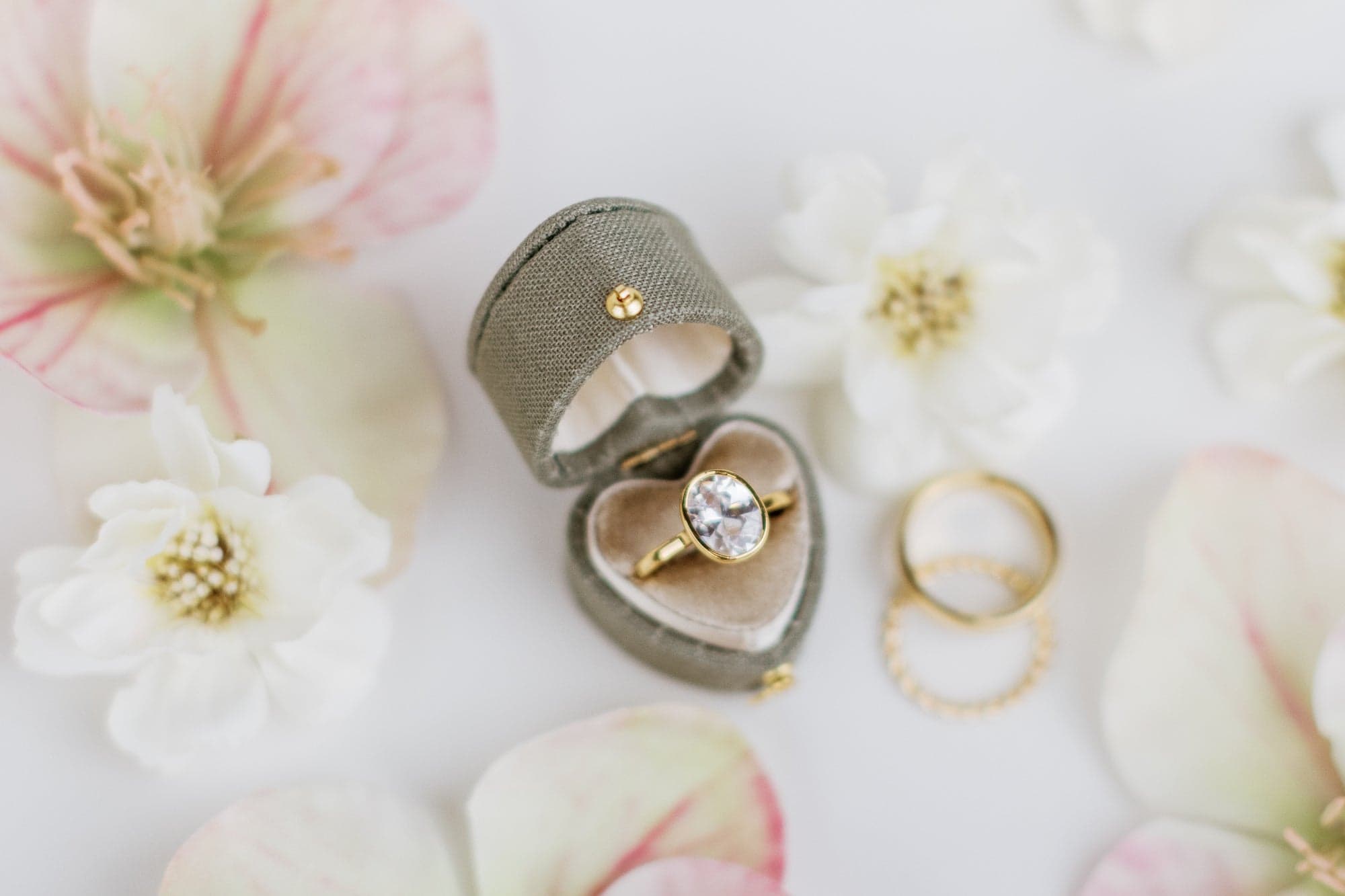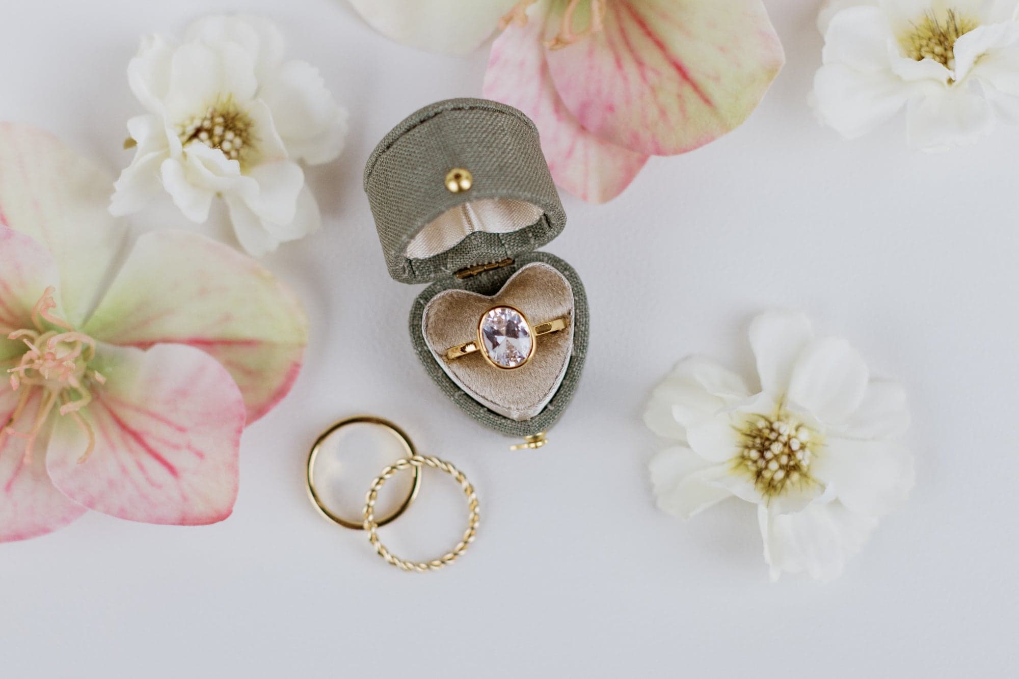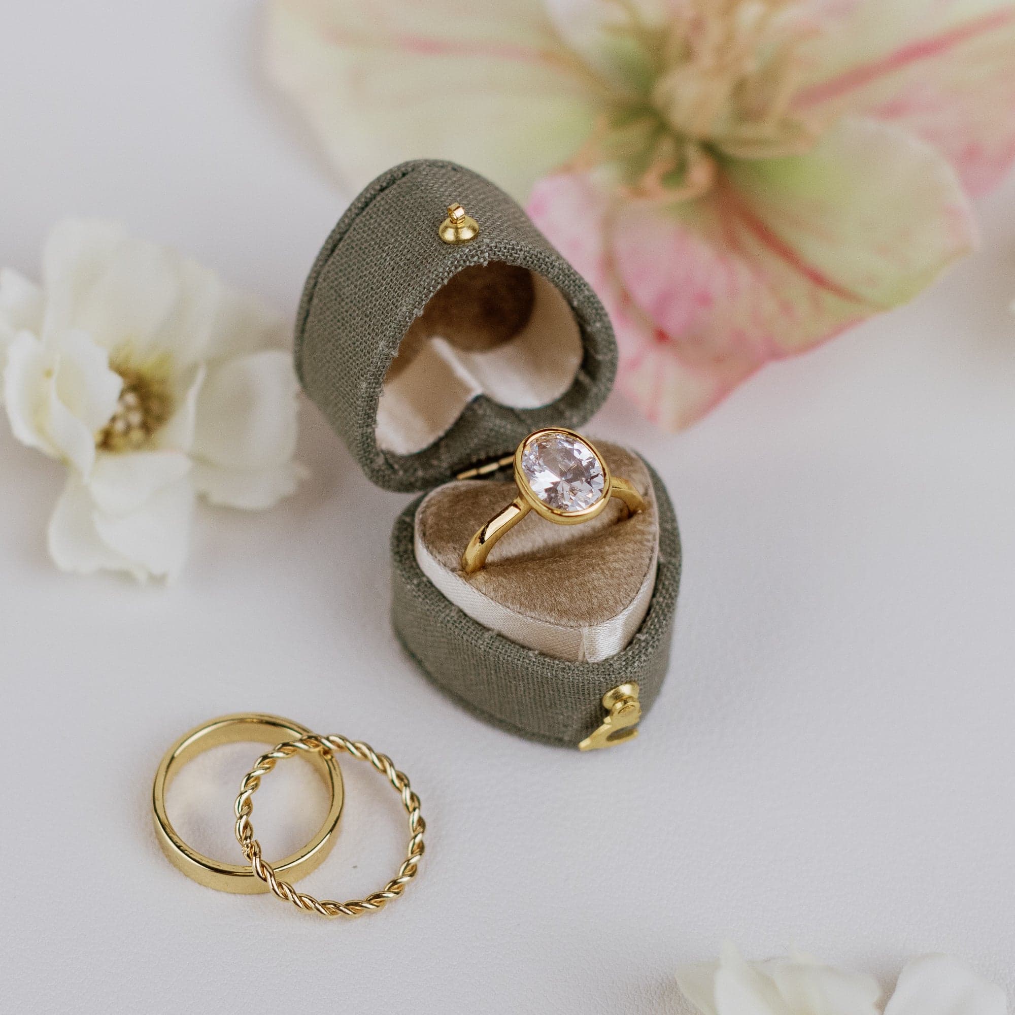 Limited edition heart ring box in sage & fawn.