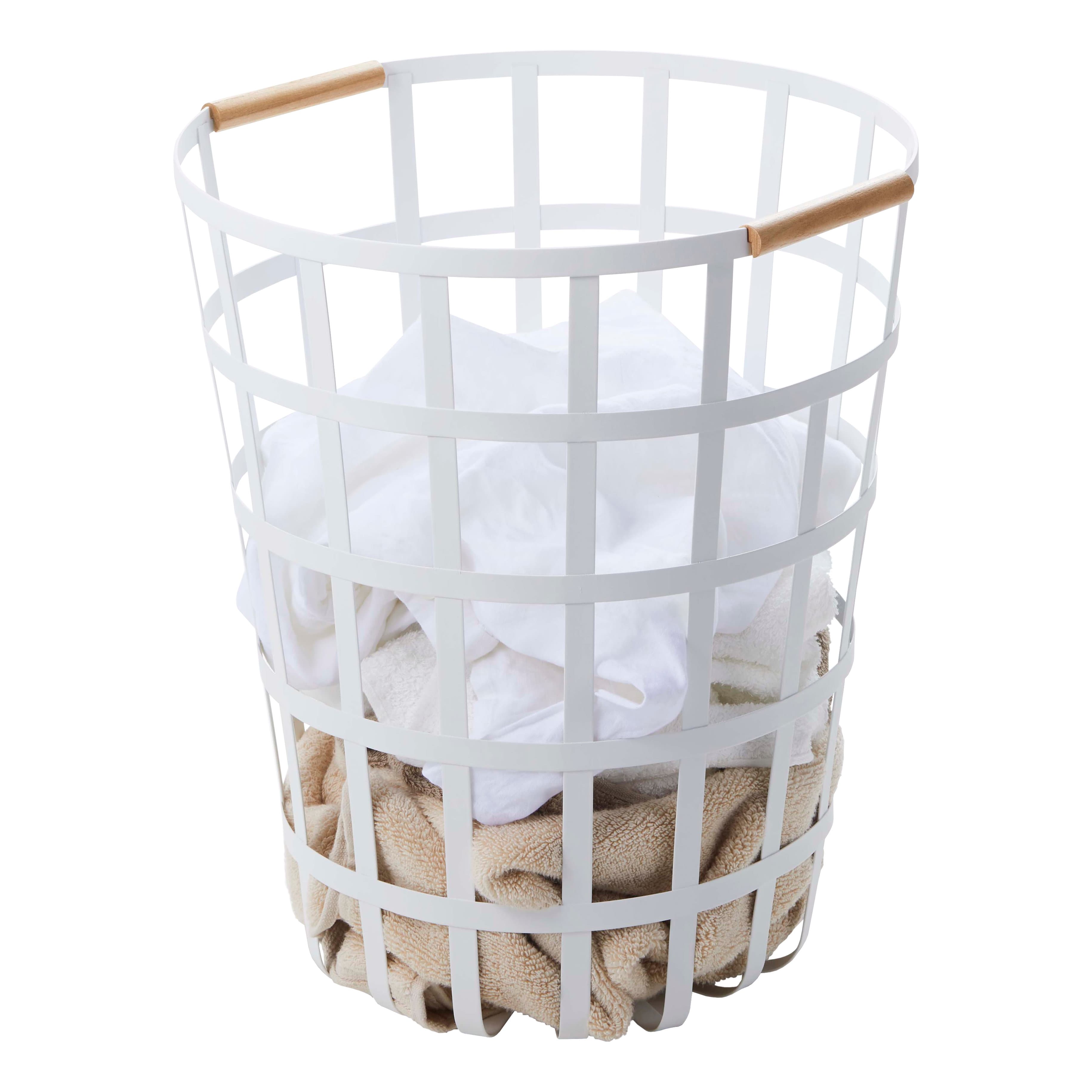 With a strong white steel frame and smooth wooden handles, this is a laundry bin that doesn't need to be kept out of sight. The laundry basket holds plenty of clothes and its lightweight design makes it easy to carry from room to room.