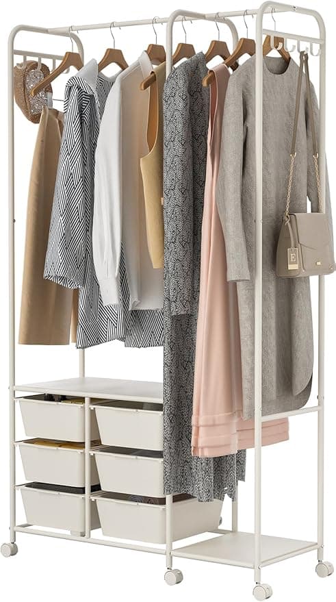 Buy Ytaoka White Rolling Clothes Rack with 6 Drawers and Shelves, Clothing Racks for Hanging Clothes with Wheels, Heavy Duty Garment Rack, Standing Clothes Hanger Rack with 8 Hooks, Easy Assembly: Garment Racks - Amazon.com ✓ FREE DELIVERY possible on eligible purchases