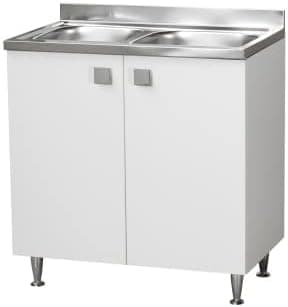 Relax e Design Meuble cuisine cuisine sous-évier avec évier en acier inoxydable 304-2 VASE, 2 portes en blanc mixeur, 80 x 50 cm H.88