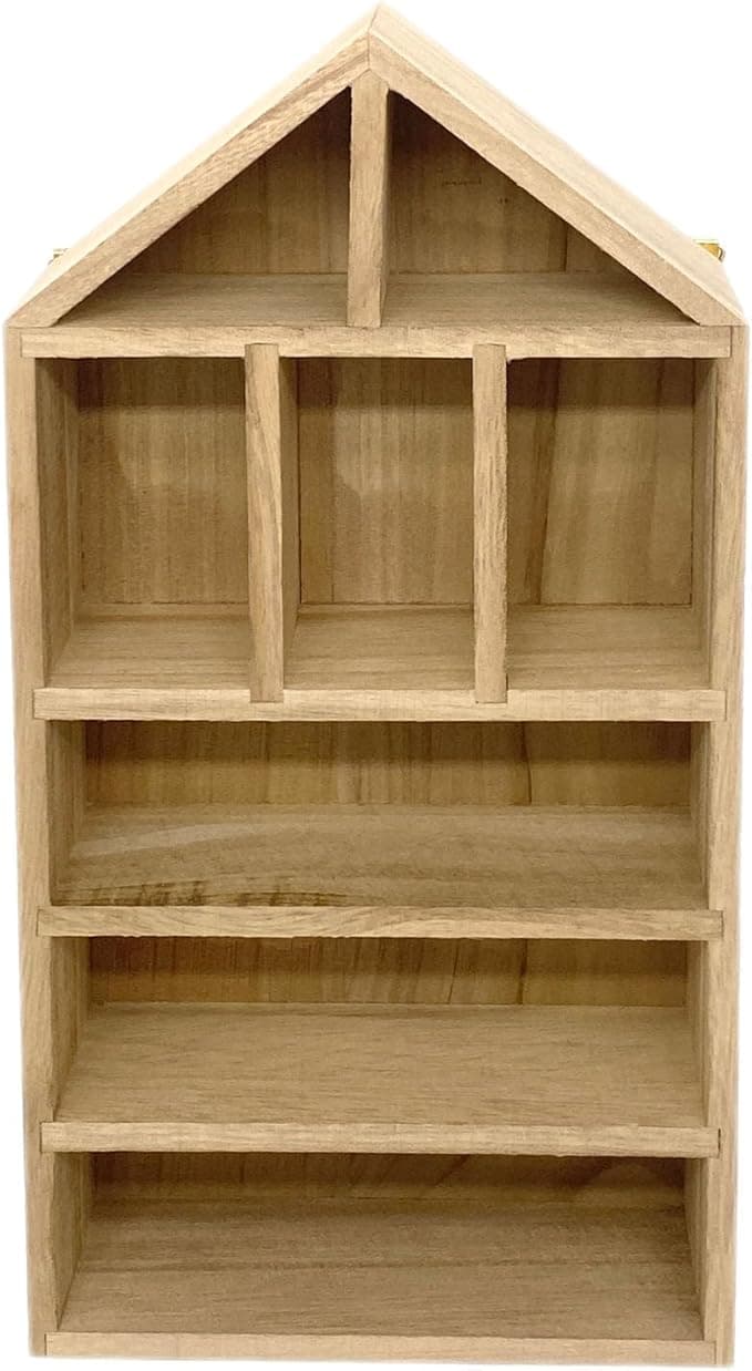 TANG SONG 8-Slot Wooden House-Shaped Mini Figures Cubby Box Display Shelf Organizer Storage Box (Light Brown)