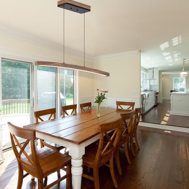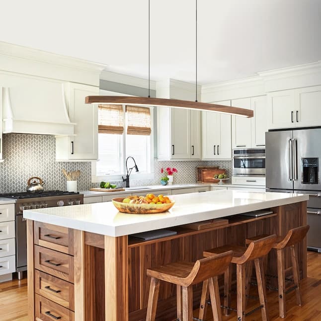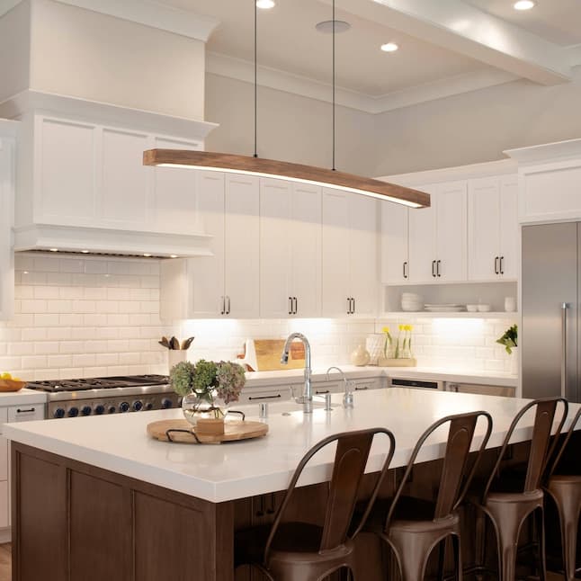 This wood frame LED kitchen island pendant makes a vintage, eye-catching addition to any space. Not an ordinary linear kitchen island light fixture, but an irregular rectangular design with wood material that can add more vintage decor to your house, and bring a unique and artistic atmosphere to your house. The warm light 3000K color temperature adds to the cozy atmosphere, while the fully dimmable feature allows you to adjust the brightness to suit your needs. The living room, kitchen island, and dining room are some of the ideal spaces where the LED pendant light can shine. The LED light is energy efficient and provides a bright, even light that is perfect for any room.