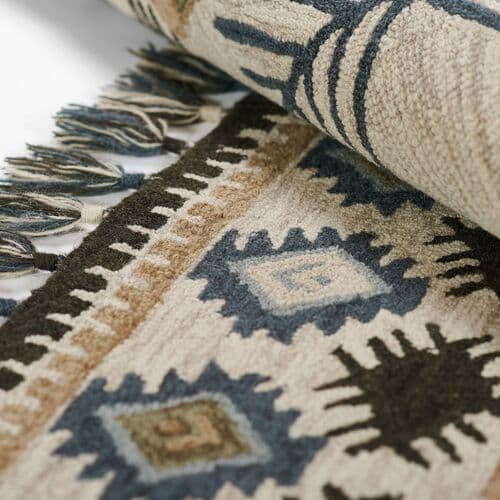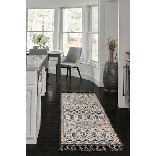 Southwestern motifs get a modern edge in the graphic design elements of this decorative area rug collection. Available in a stunning array of tribal patterns, each floorcovering features a geometric repeat inspired by iconic tribal prints. Diamonds, crosses, medallions and stars form repeating stripes and intricate linework while tassels at the top and bottom of the rug accentuate the exotic vibe of the collection with a fun, fringed border. Exceptional in style and composition, each rug is handcrafted to perfection.