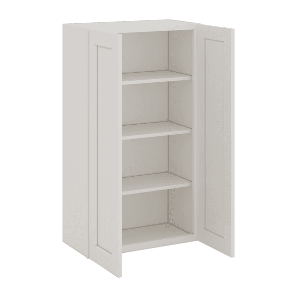 42" Tall White Shaker 1-1/4" Overlay Wall Cabinet - Double Door 24", 27", 30", 33", 36"