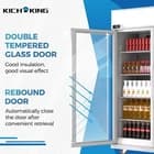 Bright Visibility & Illumination: Boasting Colorful LED lighting with longer-lasting illumination, KICHKING Upright Display Refrigerator for an optimum product presentation! Glass door ensures a crystal-clear view of interior, and gives full visibility to contents.