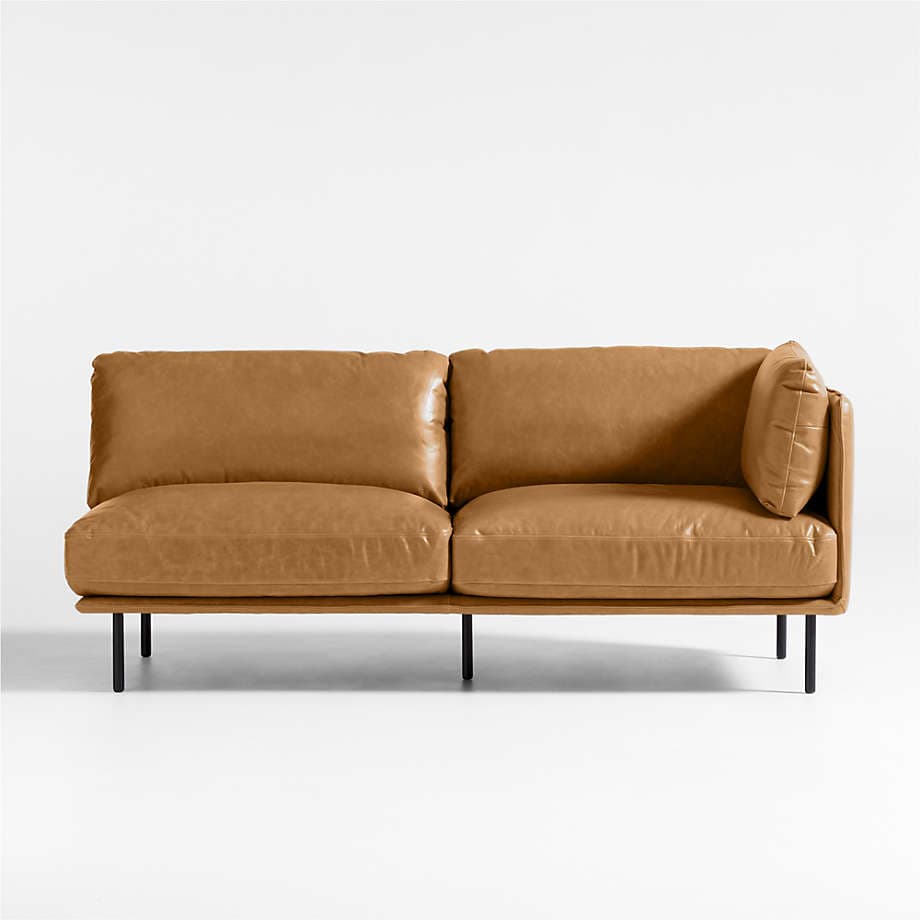 Indulge in the sumptuous leather surround of our Wells sectional collection. An updated version of the classic leather sofa, the right-arm sofa looks rustic and modern as it tucks cushions onto a slim frame supported by iron legs. The beautiful full-grain, full-aniline leather offers a smooth sheen and lustrous look, tailored with topstitching and French seams. Carefully selected for its fine quality and distinctive markings, the leather will develop an even richer patina over time.