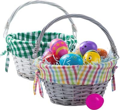 Our easter rattan baskets includes 2 Woven Wicker Baskets with Handle. MULTIPLE USAGES. These baskets are great for Easter Eggs Hunt. EASY TO USE. Our natural woven baskets are made from high-quality Reusable Materials.