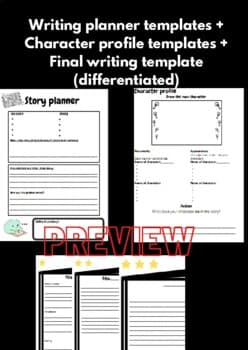Hello~! Here I have create simple story writing templates for students to plan out their creative/narrative stories! This package includes Story Planner - The worksheets help students plan out their stories e.g. what character/setting/problem and resolution will be added. Character Profile - This worksheet helps students grasp a better idea of the character they are writing about! e.g. personality / appearances and their role in the story. Differentiated final writing piece - I have label stars on each worksheets 1 star (low achievers) - Paragraphs have been section - Introduction - problems - ending 2 star (middle achievers- only paragraphs are section but not labels 3 star (high achievers) - No section no labels hope you like plz leave a review for further tips