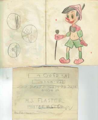 Judaica 2 drawing books of a Jewish girl M.J. Flaster with drawings 1940-50s