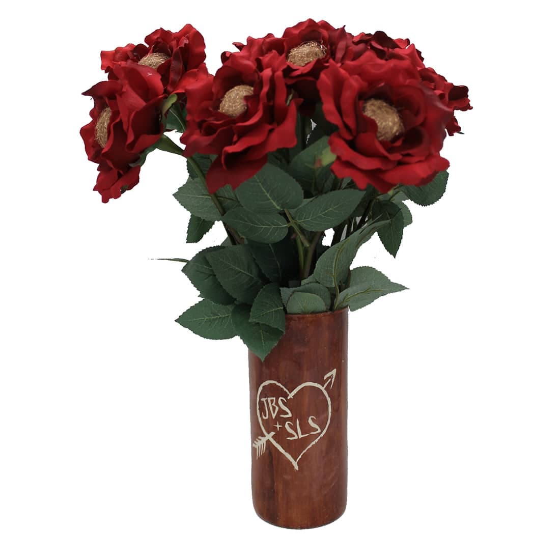 Go for drama with one stem or get a whole bunch. Either way, these bronze flowers are the essential bronze anniversary gifts. Make your selection here! The traditional 8th anniversary gift is bronze. Our bronze roses are created using our finest artificial roses with a ball of bronze wool glued in the center – 17” stems. We have a variety of stem options including 12-stem, 8-stem (8 for 8th), 2-stem, and 1-stem. We also have a “1-stem for each year” option, which would include 1 rose representing each year of marriage: bronze, wool, candy, wood, fruit, leather, cotton, and paper. The idea here is that you would add a stem each year to a growing display. We package all our bouquets in clear, long-stem rose boxes with tissue, ribbons, & glitter for a great out-of-the-box gift presentation.
