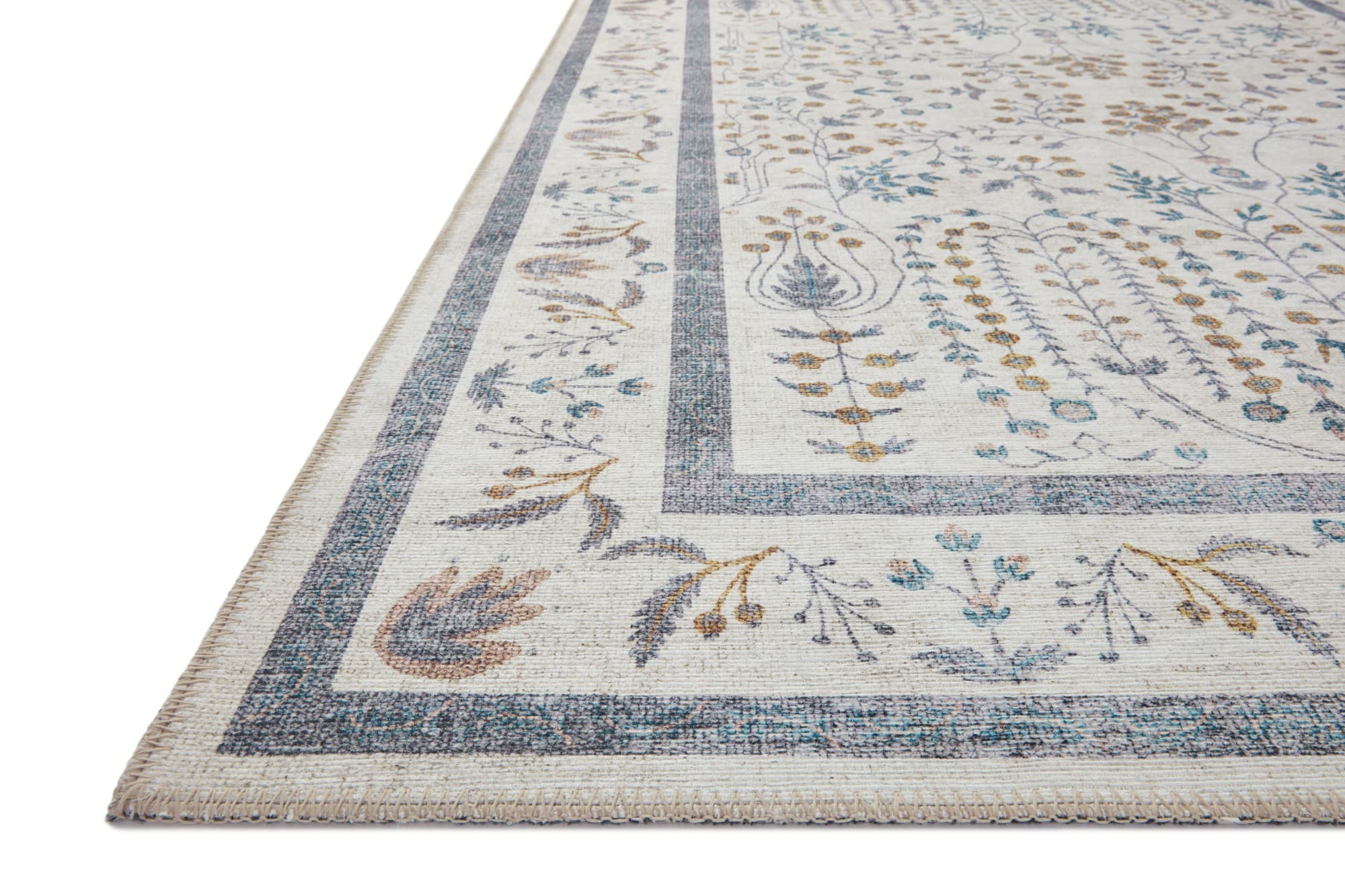 Bring fanciful florals to any room in the home with the exquisitely adaptable Maison collection from Rifle Paper Co. x Loloi. The beautiful Wisteria area rug features an uplifting aesthetic abound with playful details throughout – every glance reveals more to love. Rifle Paper Co. began as a stationery shop beloved for the beautiful floral artwork of co-founder Anna Bond. Now, her iconic botanical styling is available for display anywhere in the home with rugs made in partnership with Loloi. Loloi uses an advanced digital printing technique to apply the design directly onto the flat 100% polyester surface. Wisteria is decorated with trailing vines abloom in rhythmic blossoms, the layered borders filled with lively foliage to match. Feel confident using this resilient traditional rug in hardwearing placements like dining rooms and entryways. This smart synthetic rug features power-loomed construction, its smooth face made from 100% polyester that wards away common stains for pet-friendly and child-friendly appeal. Maison collection rugs are shed-free for easy upkeep. Vacuum using a suction-only setting or a hard surface tool. Rotate annually, or more often if placed within the path of heavy foot traffic.