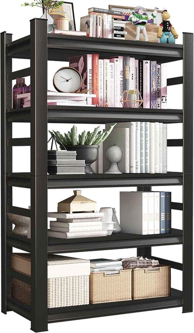 5 Tiers Book Shelves, Office Shelf Organizer, Heavy Duty Book Shelving, Adjustable Bookshelf, Freestanding Book Shelves, Book Shelves for Living Room, Black Bookshelves (32"W*15.7"D*63"H)