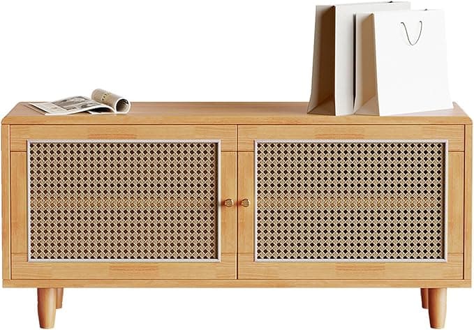 Introducing our exquisite all-solid rubberwood shoe cabinet, meticulously crafted with natural and clear wood grain patterns. It features genuine Indonesian rattan wicker doors, adding a touch of warmth and tranquility to your home. Begin your journey towards a beautiful life by choosing the perfect color that suits your style.