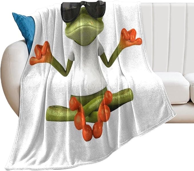 NIBABA Divertida manta de rana de hojas para meditación, yoga, cobija suave para hombres, mujeres, niños y niñas, acogedora manta de microfibra cómoda para sofá, cama, 60 x 80 pulgadas (150 x 200 cm)