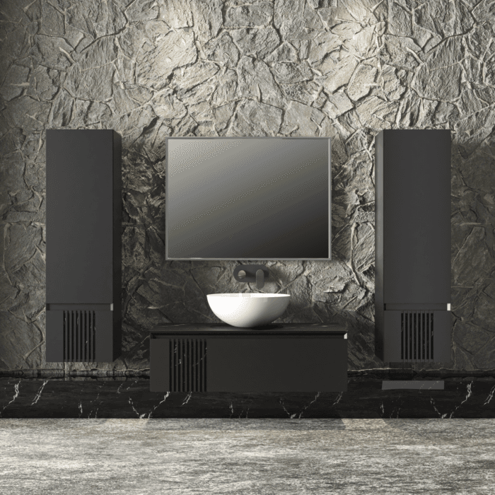 Standard Set Includes Vanity with Washbasin Revolutionary collection DELUX: imposing furniture for special interiors. This stylish collection is designed for those who appreciate simplicity and comfort. Clear lines, magical appeal of quality materials, and impeccable functionality – this is exactly what we adore about our new designer line. It is a great solution for arranging both private residences and public facilities – beauty salons, hotels, medical centers, hair salons, etc. The unique feature of the DELUX collection is the curved front of the cabinet, which gives the product a distinctiveness. The sink from the Bath Oasis (Delta model) is made of high-quality ceramics that are resistant to temperature and mechanical effects. The certified hardware from the brands “Blum” and “Tandem” (Austria) meets world quality standards.