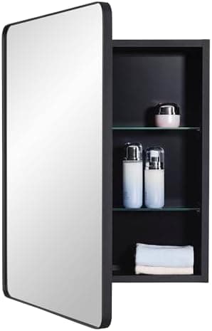 Buy IDYLLOR Black Bathroom Mirror Medicine Cabinet with Round Corner Framed Door 20 x 26 inch, Recessed or Surface Mount, with Adjustable Glass Shelves: Medicine Cabinets - Amazon.com ✓ FREE DELIVERY possible on eligible purchases.