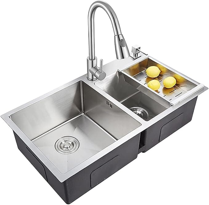 Drop-In or Undermount double Bowl Kitchen Sink, stainless steel sinks are at home in any kitchen. Constructed from high quality stainless steel for maximum durability, the deep basins accommodate large dishes with ease. kitchen sinks are equipped with soundproofing, including thick rubber dampening pads. Each sink is additionally treated with protective coating, which reduces condensation and further dampens sound.