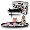 Este set de portavelas con jardín zen te permitirá crear un ambiente acogedor en tu hogar. La bandeja rectangular con la planta artificial y candelero es ideal como decoración de mesa en el comedor o el salón, pero también atraerá las miradas en el alféizar de la ventana o sobre una cómoda. Gracias a la arena y el rastrillo incluidos, podrás utilizar el centro de mesa también como tranquilo jardín zen. El jarrón sirve como difusor de fragancias con la ayuda del ambientador que tú prefieras.