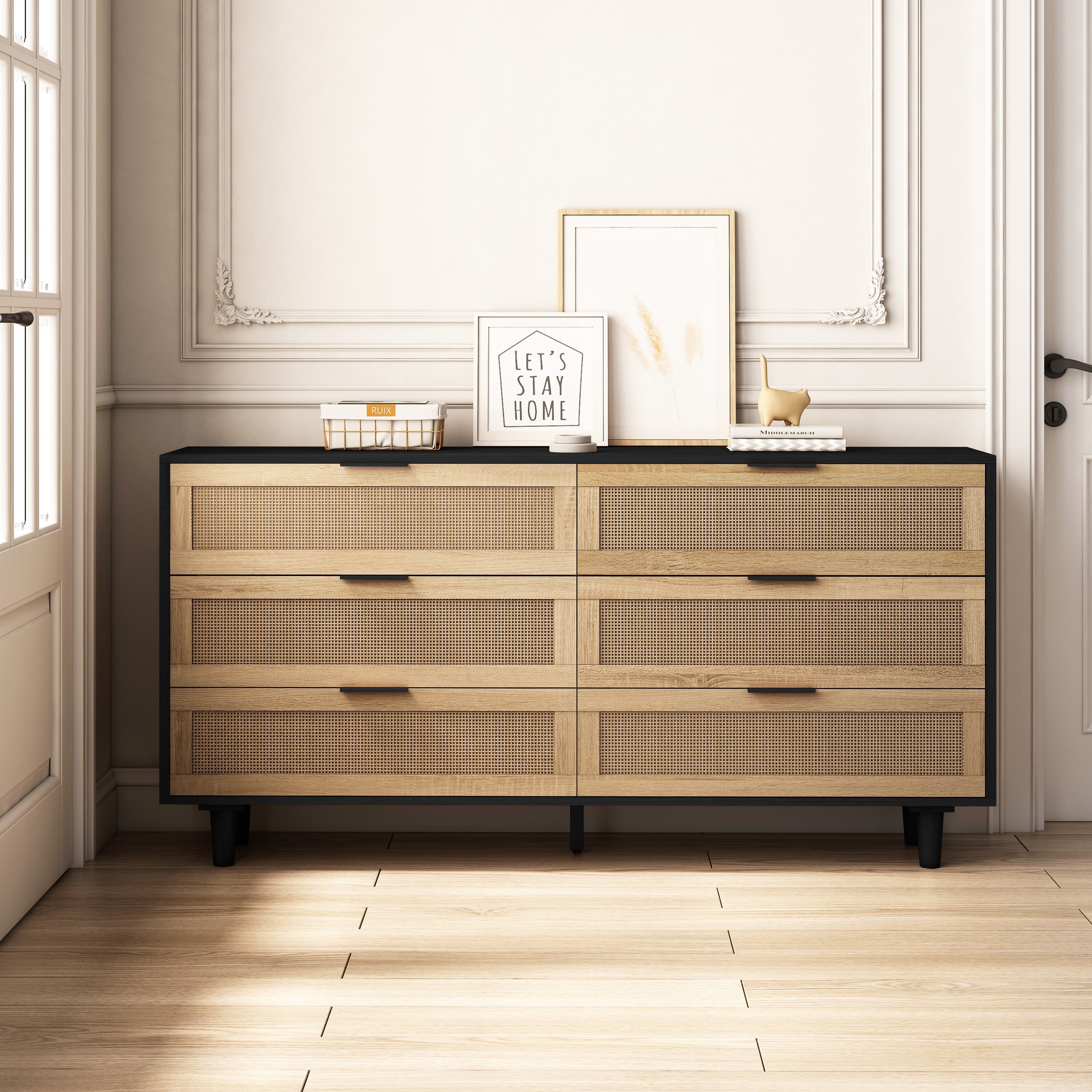 Buy 59.06" 6- Drawers Rattan Storage Cabinet for Living Room Black at Walmart.com
