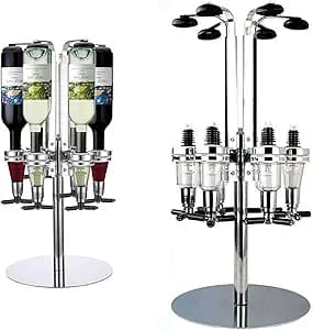 McbeAn Bar Optics Drink Dispenser, 6 Bottle Rotary Stand, Height Adjustable, Smooth Pouring, Silver with Black
