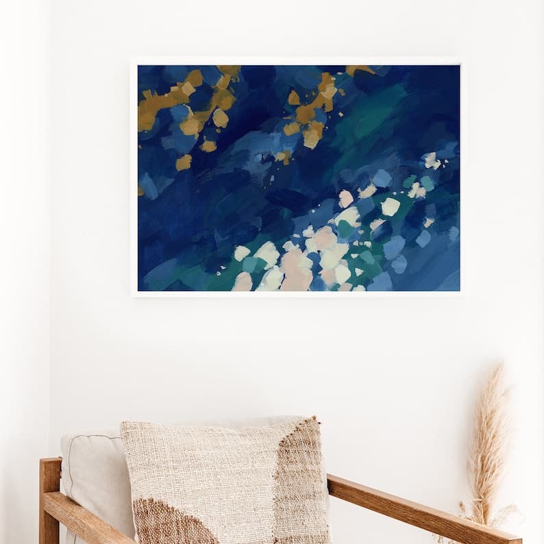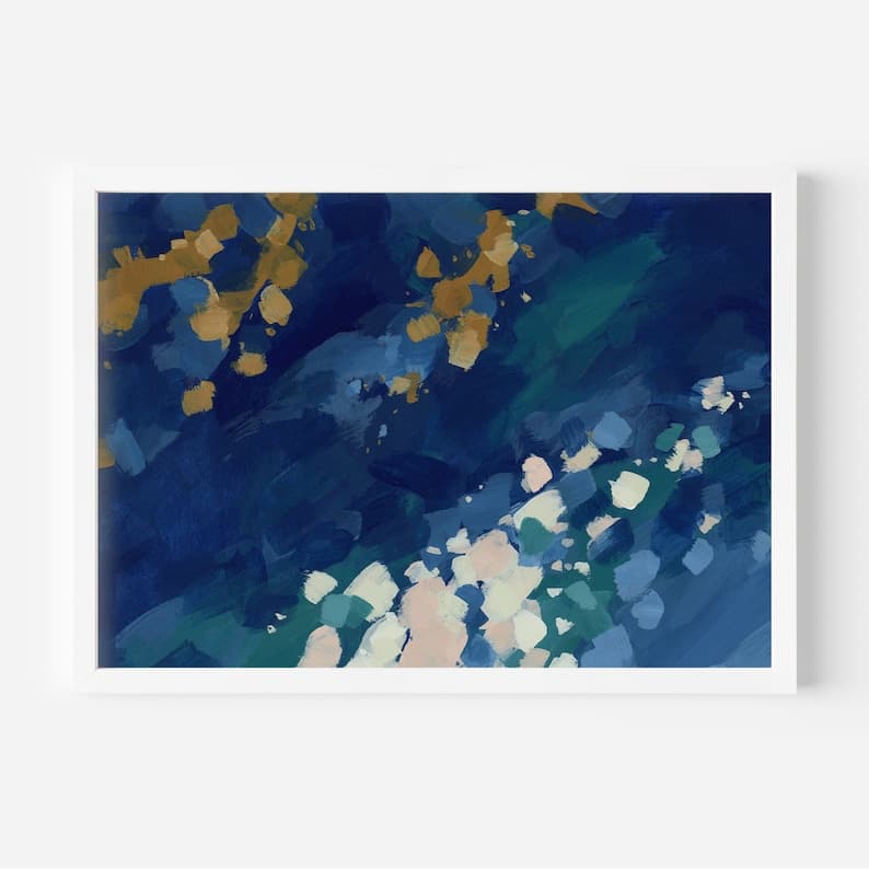 This Giclée Prints item by PrintsbyJettyHome has 2 favorites from Etsy shoppers. Ships from Anaheim, CA. Listed on Feb 7, 2025. Traverse a coastal paradise of kelp forests, blue seas and the California sunshine with our series, Anacapa Landing. This collection was inspired by the Channel Islands both on land and in the sea through a variety of artwork, including landscapes, underwater scenes, abstract paintings, and modern sea life illustrations in a rich blue color palette. "The Bubbling Sea" is inspired by a colorful ocean ecosystem in tones deep blue, light blue, turquoise, terracotta ochre, pink and beige. Made by PrintsbyJettyHome.