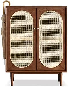 Shoe Cabinet for Entryway Solid Wood Rattan Shoe Cabinet Home Door Storage Locker Multi-Layer Storage Shoe Rack Against The Wall Porch Cabinet Shoe Storage Cabinet (Color : B, Size : 80cm)