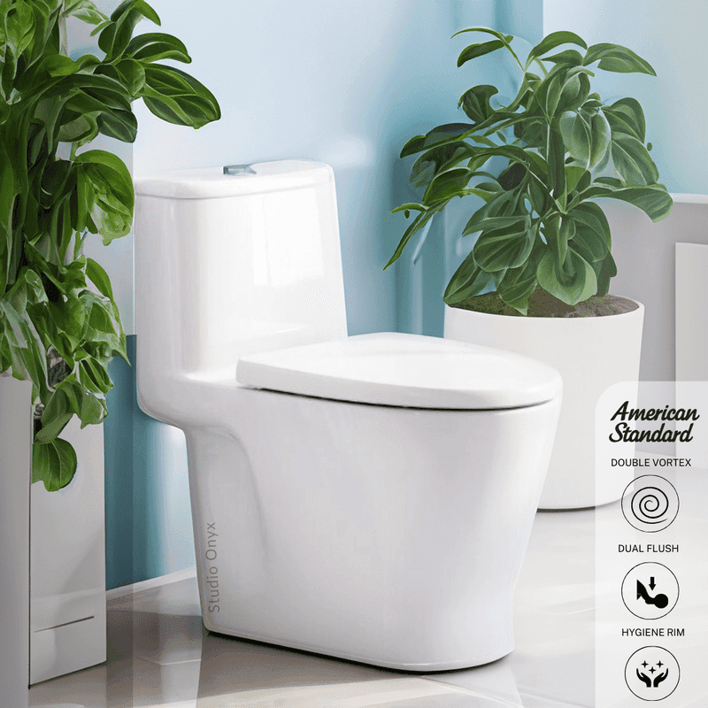 Upgrade your bathroom with the American Standard One-Piece Closet. featuring a sleek design and effective dual flush system. Experience style, efficiency, and comfort all in one!