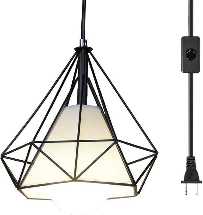 Ganeed Pendant Light,Plug in Hanging Lamps,Industrial Vintage Mini Wire Kitchen Chandeliers Fixtures with Metal Cage Shape,Hanging Lights with 16.4ft Cord On/Off Switch