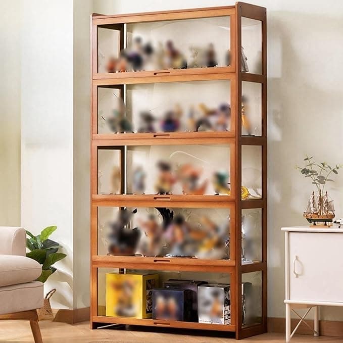 Six major advantages: 1. Bamboo frame 2. Transparent on all sides 3. Thickened material 4. Fully sealed and dustproof 5. Large capacity 6. Flip door design Transparent design on all sides, with clear and unobstructed decorations inside The more you use it, the more you like it. Its minimalist appearance is practical and versatile Large capacity, available in three, four, or five layers, neatly stored to meet your different needs The cabinet door flip can be suspended, highly transparent, dustproof, and easy to access Single layer height 31cm x width 30cm, most items can be placed Product specifications Product Name: Display Cabinet Product material: bamboo frame+transparent acrylic Sizes available for selection: Three layers 27.55x13.38x41.73in/35.43x13.38x41.73in Fourth floor 27.55x13.38x55.11in/35.43x13.38x55.11in Fifth floor 27.55x13.38x67.71in/35.43x13.38x67.71in