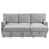 Multi-Functional 89 in. Gray Pull-out Twin Size Polyester Sofa Bed with USB Charging, 2 Cup Holders, Hidden Storage