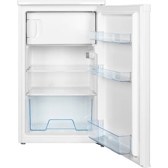 Frigorífico cíclico de una puerta Svan. Posee un acabado blanco. El congelador está en la parte superior. Con puerta reversible apertura tipo uñero. Es de libre instalación. Sus dimensiones son: 50 cm de ancho x 84 cm de alto x 56 cm de fondo. Peso neto: 26 kg.