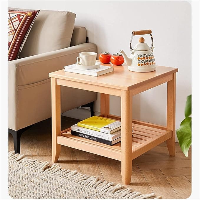 Tavolino da divano a 2 livelli, tavolini da salotto, tavolino da caffè quadrato accanto al letto, tavolo da snack, mobile laterale in legno massello, scrivania per laptop, ripiani per tavolo