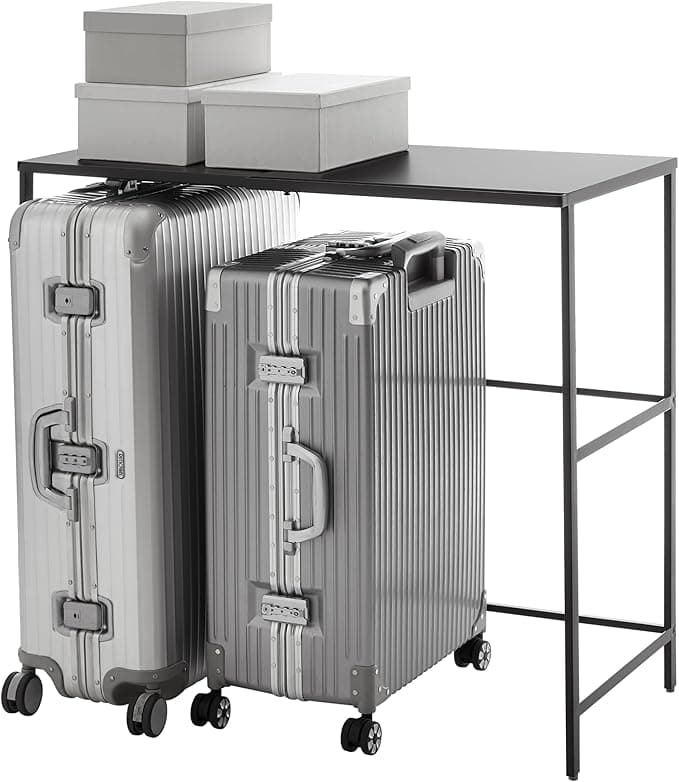 Het geheim van de frequente reiziger. Er zijn maar weinig items die lastiger zijn om op te bergen dan een koffer, maar niet met deze handige uitvinding! Met dit uitbreidbare rek kunt u dode ruimte elimineren door de broodnodige opslagcapaciteit boven uw bagagecollectie te bieden. Houd opbergbakken en dozen bovenop en gebruik de opbergbalk onder het bovenpaneel om kledingartikelen op te hangen. Essentieel voor elke frequente reiziger.