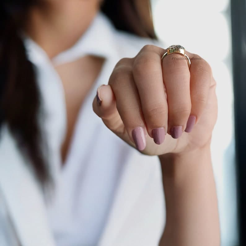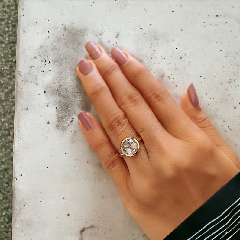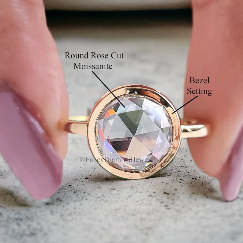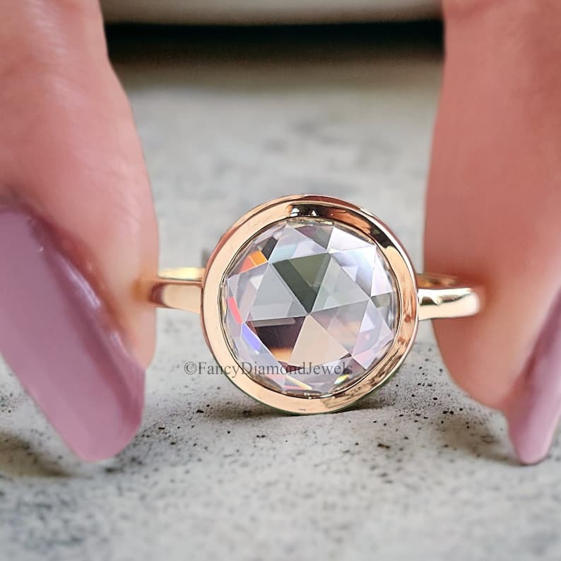 Singular Bezel Set Round Rose Cut Moissanite Engagement Ring 2.65 CT Round Rose Cut Classic Simple Solitaire Moissanite Wedding Ring FD203 - Etsy