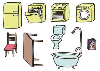 2 PDF files: - Rooms and furniture flashcards (black & white version) - Rooms and furniture flashcards (colour version): This can be used to introduce the topic. Students have to decide in which room they can find the furniture and objects.